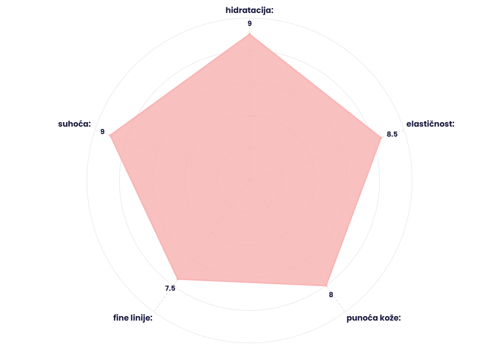 Razmišljaj o njemu kao “velikoj čaši vode” za tvoju kožu. Hijaluronska kiselina i glicerin vežu vodu i zadržavaju je u koži, što znači manje sitnih linija uzrokovanih dehidracijom i više punoće. Super je za sve tipove kože, posebno kad ti ten izgleda umorno i beživotno.