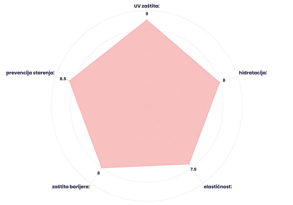 - UV filteri širokog spektra – UVA + UVB zaštita.